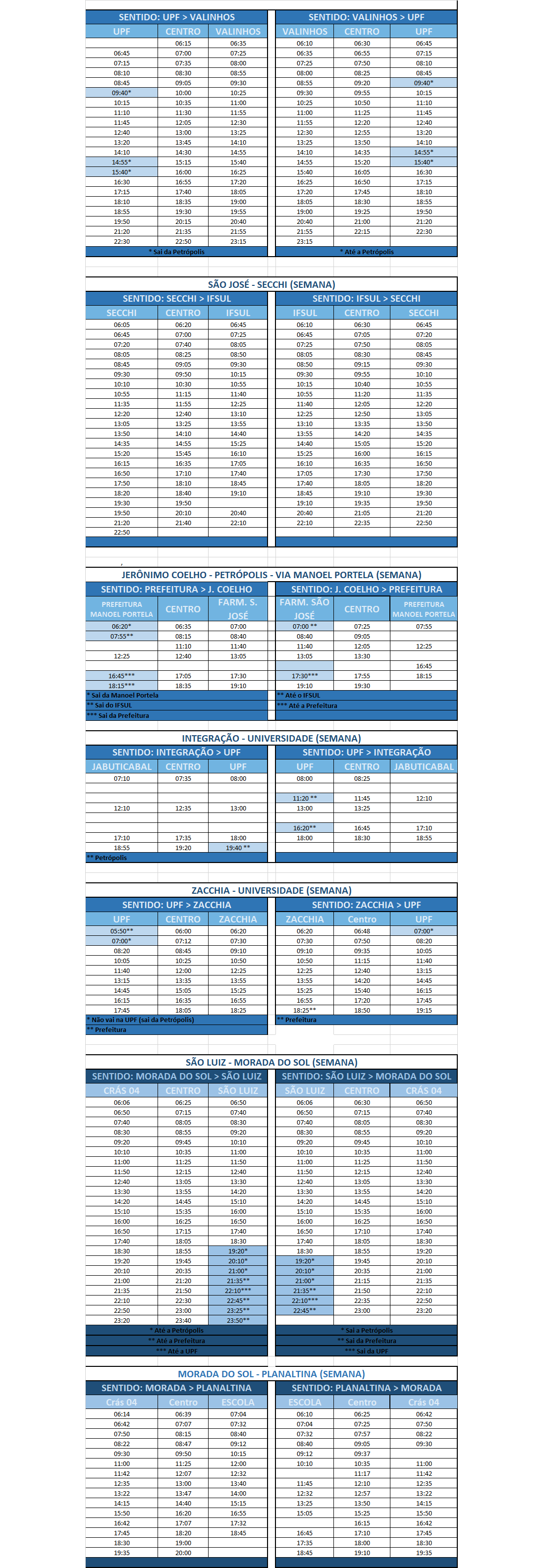 Horário dos Ônibus